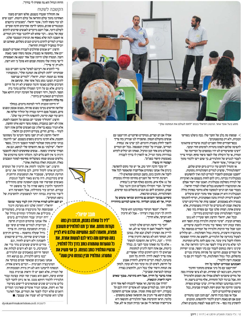 ראיון במוסף "דיוקן" – "מקור ראשון", כ"ט טבת תשע"ט 5.1.19